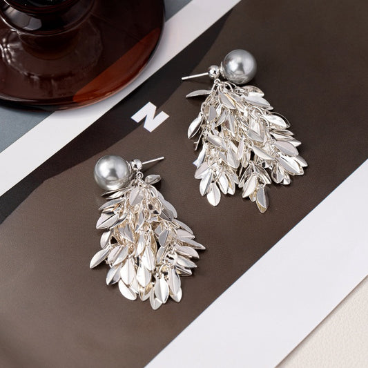 Fashion | 925 silver needle long tassel gray pearl earrings