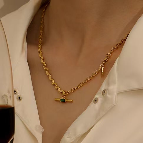 Vintage | Emerald zircon curved chain Necklaces