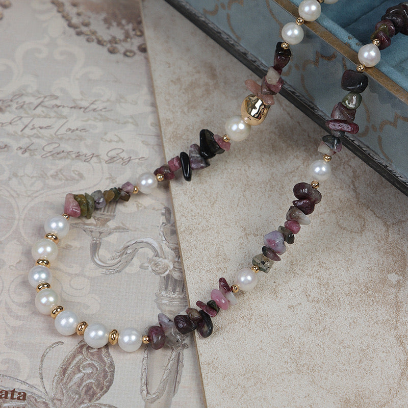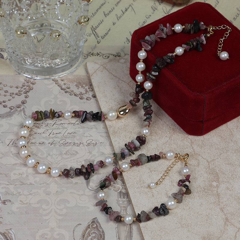 Resort-style | French Resort-style Freshwater Pearls Natural Stone Necklace and Bracelet